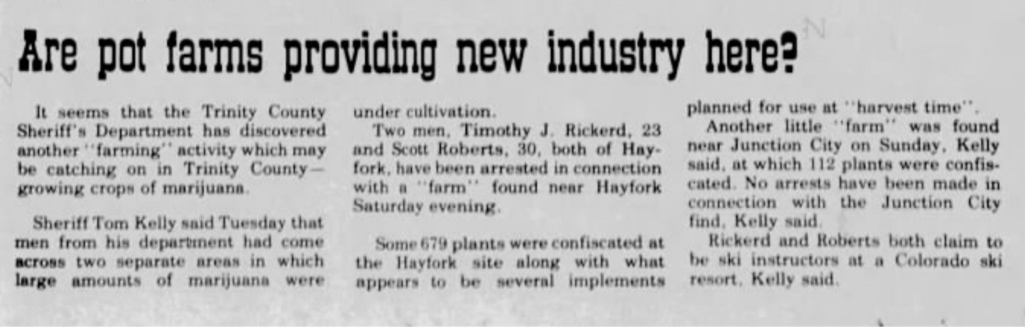 Thanks for reading! Whether you’re a fan of cannabis, California, history, true crime, or law enforcement, I hope you’ll subscribe and stick with me for more unbelievable stories during the War on Drugs in the Emerald Triangle and my crazy childhood. It won’t be boring!